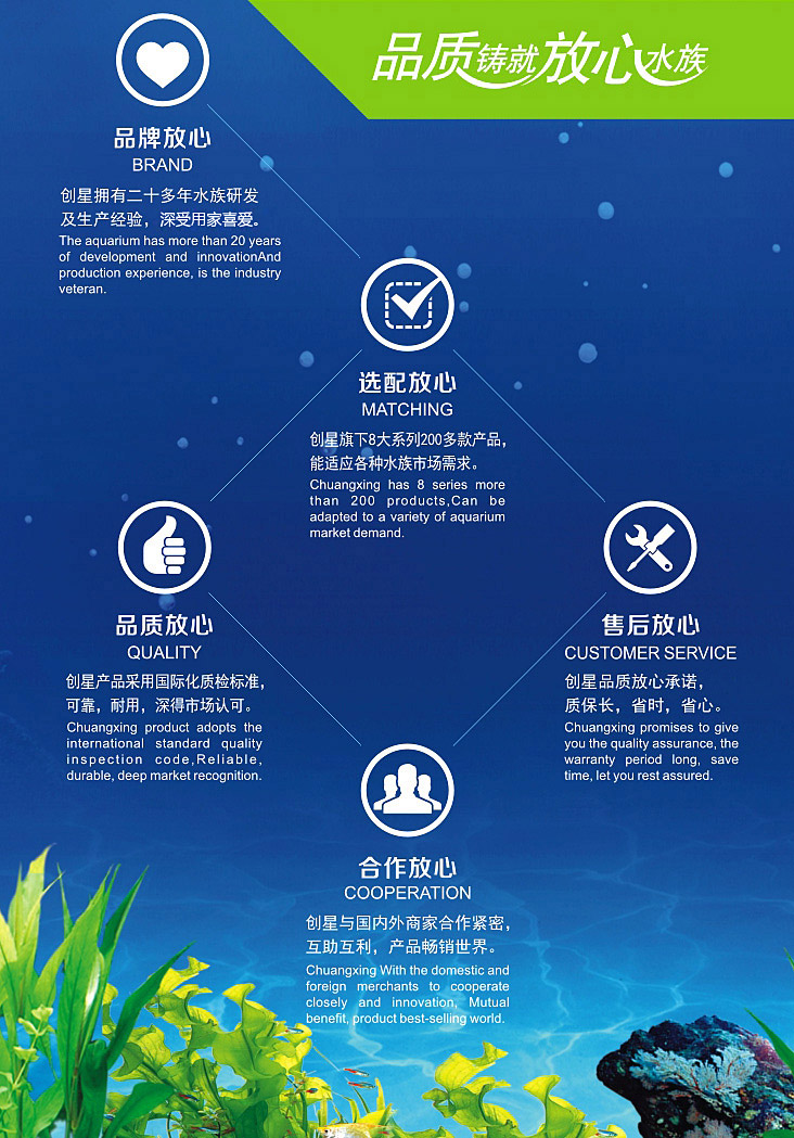 为让市场更了解爱体育(中国)_爱体育(中国)官方核心价值观,我们重塑了新的广告语:“品质铸就放心水族”。